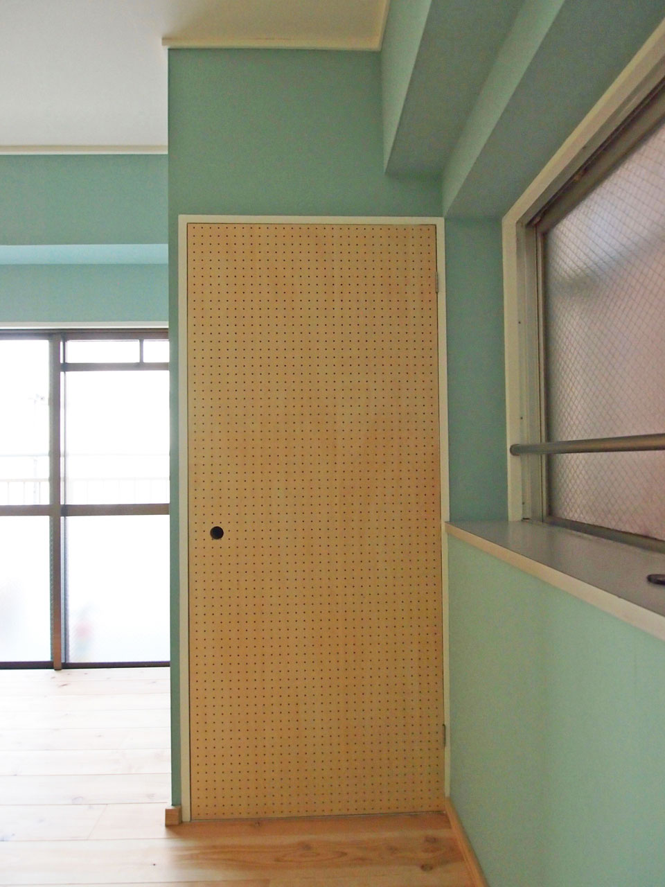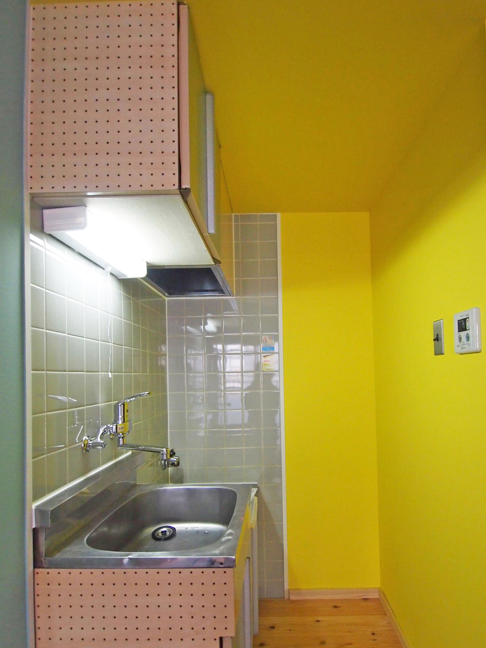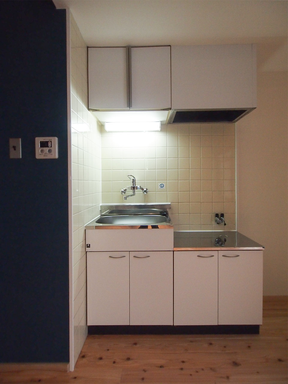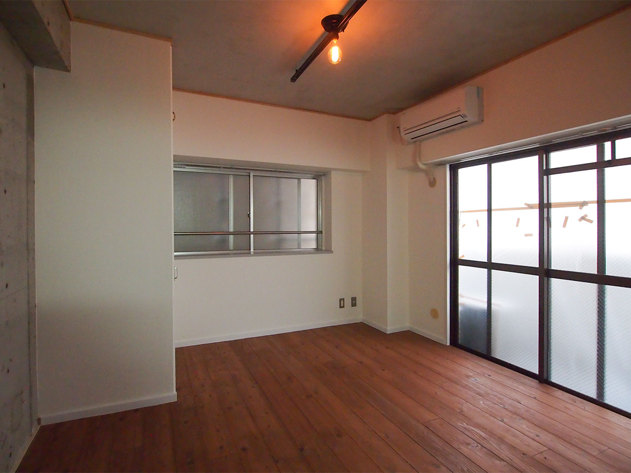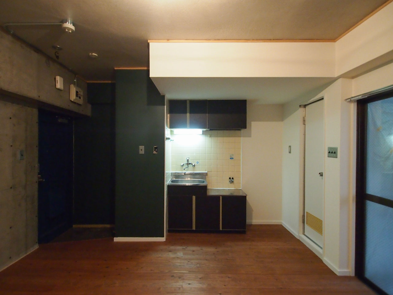壁面の解体工事の過程で出てきたコンクリート素地の壁に下地材で仕上げた天井面と、敢えて作り込み過ぎない引きの発想の空間。暖色のあかりを静かに灯せば倉庫や作業場のような雰囲気が醸し出されるかもしれません。